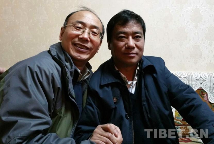 這是唐召明(左)與時任那曲地區(qū)發(fā)改委主任楊東升(右)在楊東升家中相聚時,合影留念(楊東升家人2014年12月27日攝)