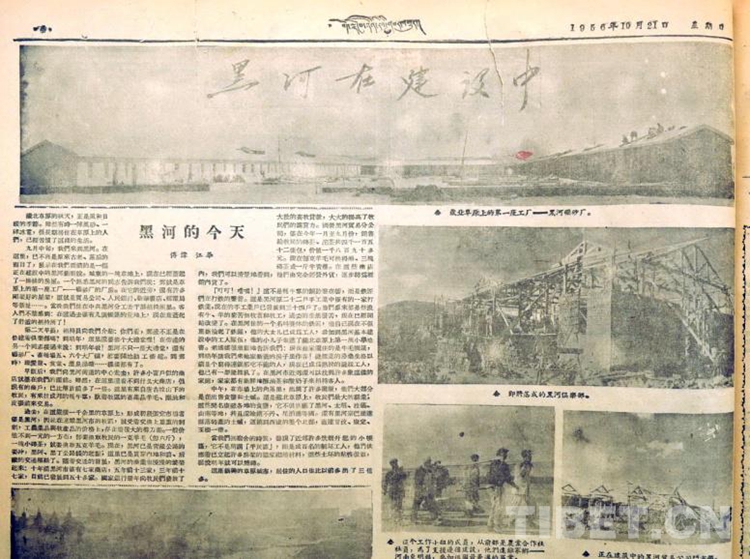 這是1956年10月21日新聞報道“黑河在建設(shè)中”的《西藏日報》(唐召明翻拍圖片)