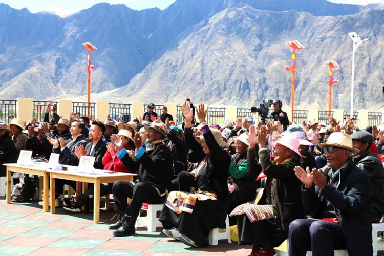 嘎東團(tuán)結(jié)新村的村民們?cè)缭绲貋?lái)到錄制現(xiàn)場(chǎng),坐在觀賽區(qū)等候比賽開始。當(dāng)62歲的參賽歌手阿乃引吭高歌《北京的金山上》,全場(chǎng)村民跟著節(jié)奏揮動(dòng)手中的紅旗,一起和唱著“北京的金山上光芒照四方,毛主席就是那金色的太陽(yáng)……”熟悉的旋律依舊讓人感動(dòng),唱出了西藏各族兒女對(duì)黨真摯的感情。