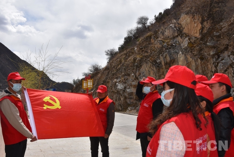 圖為國網(wǎng)江達(dá)縣供電公司在西藏解放第一村重溫入黨誓詞