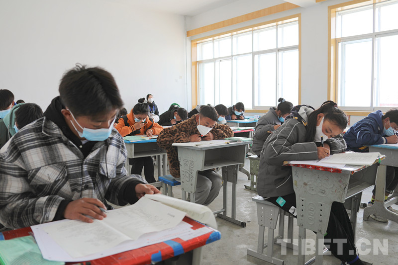圖為西藏自治區(qū)阿里地區(qū)噶爾縣中學(xué)考點考生在認(rèn)真答題 攝影:阿旺扎西