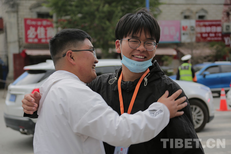 西藏軍區(qū)拉薩八一學(xué)校的成尚勇老師在高考的幾天里一直在“陪考”,考試結(jié)束后,他和自己的學(xué)生一一擁抱告別,滿眼不舍地送自己的學(xué)生一個個離開。他說,“我們原地返回,他們展翅高飛。陪了他們?nèi)?,以后就沒辦法繼續(xù)陪伴他們成長,心里會有一些不舍。”