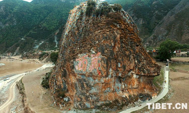 圖為江達縣崗?fù)墟?zhèn)崗?fù)写澹塑姂?zhàn)士刻下的“西藏”兩個大字 攝影:陳衛(wèi)國