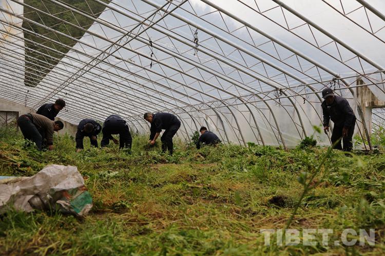 圖為西藏亞?wèn)|出入境邊防檢查站民警幫助村民在村溫室大棚種植蔬菜 攝影:黃俊山 李錦輝