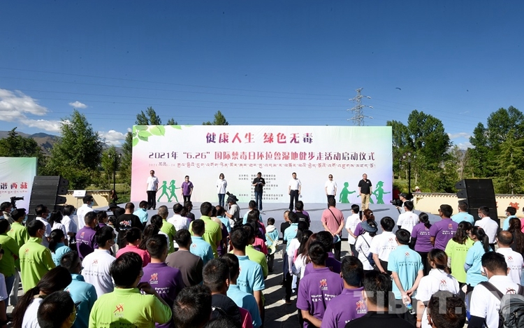 中國西藏網(wǎng)訊 6月26日,2021年“6·26”國際禁毒日環(huán)拉魯濕地健步走活動(dòng)啟動(dòng)儀式在拉薩市拉魯濕地文化廣場公園舉行。通過健身活動(dòng)倡導(dǎo)“健康人生、綠色無毒”理念,動(dòng)員廣大人民群眾參與禁毒斗爭。自治區(qū)、市兩級禁毒委成員單位代表、公安民警代表、演職人員等健步愛好者共計(jì)200余人參加了健步走活動(dòng)。