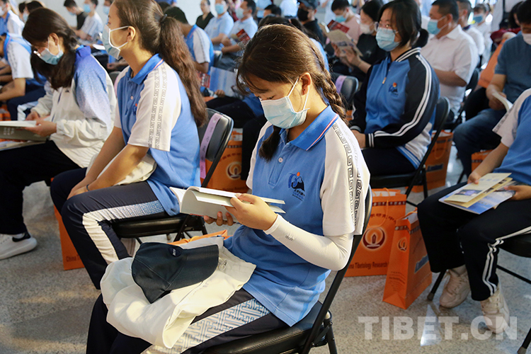 圖為6月29日的開(kāi)幕式上,來(lái)自北京西藏中學(xué)的學(xué)生翻閱展覽資訊 攝影:楊月云