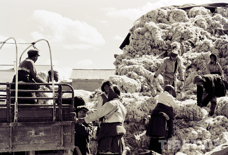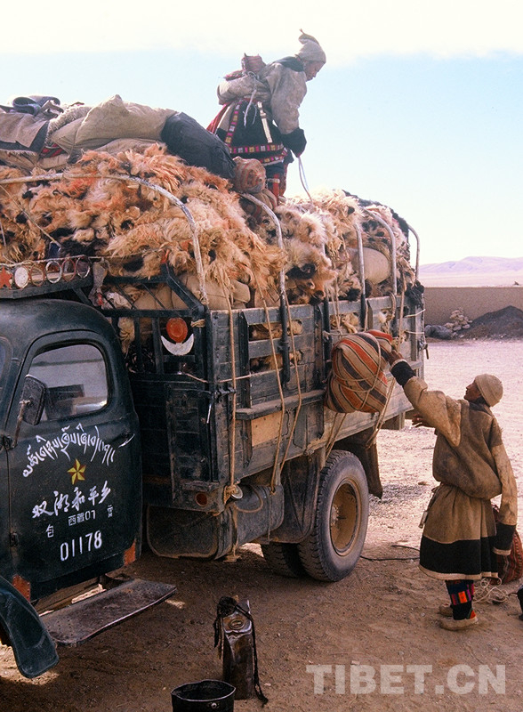 這是西藏那曲地區(qū)(現那曲市)班戈縣對達鄉(xiāng)牧民包租汽車向國家交售羊毛(唐召明1987年攝)