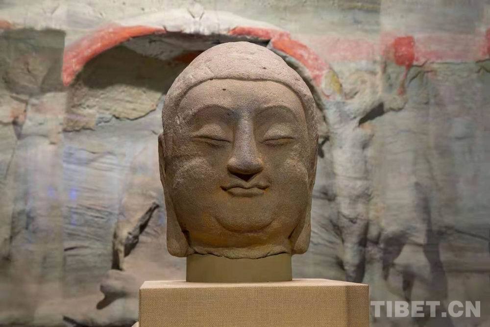 圖為“復(fù)興路上 國寶歸來”特展上的山西天龍山石窟“第8窟北壁主尊佛首”