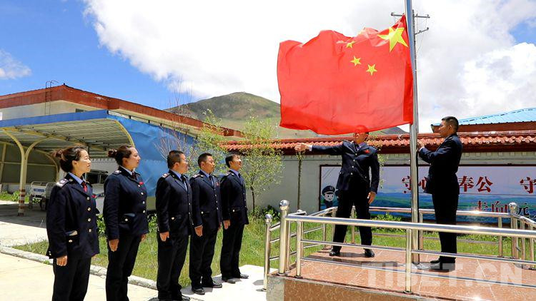 圖為錯那縣稅務(wù)局升國旗儀式 攝影:張福東