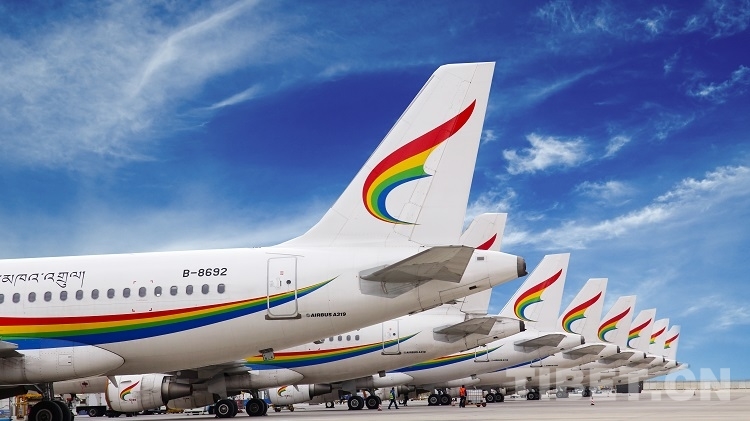 圖為拉薩貢嘎機(jī)場(chǎng)的西藏航空機(jī)隊(duì) 攝影:荊文斌