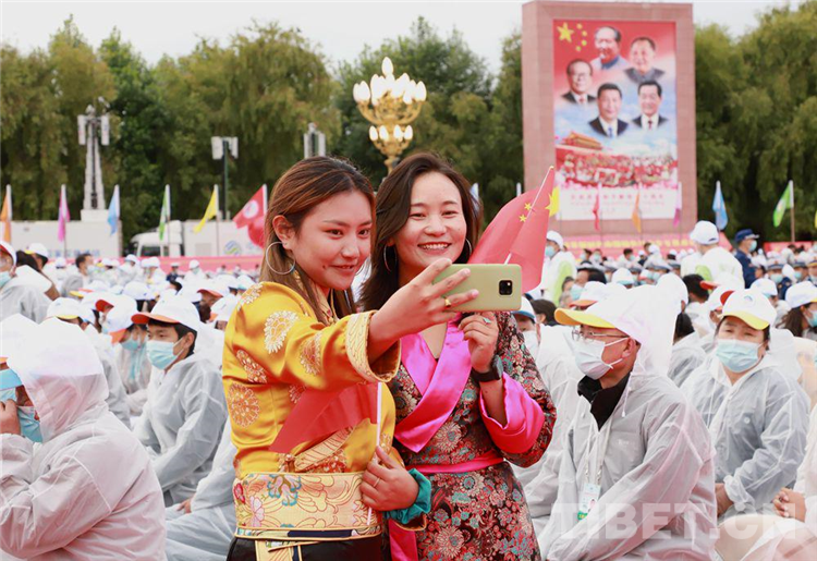 8月19日,西藏自治區(qū)2萬多名各族干部群眾歡聚在布達(dá)拉宮廣場,參加慶祝西藏和平解放70周年大會。