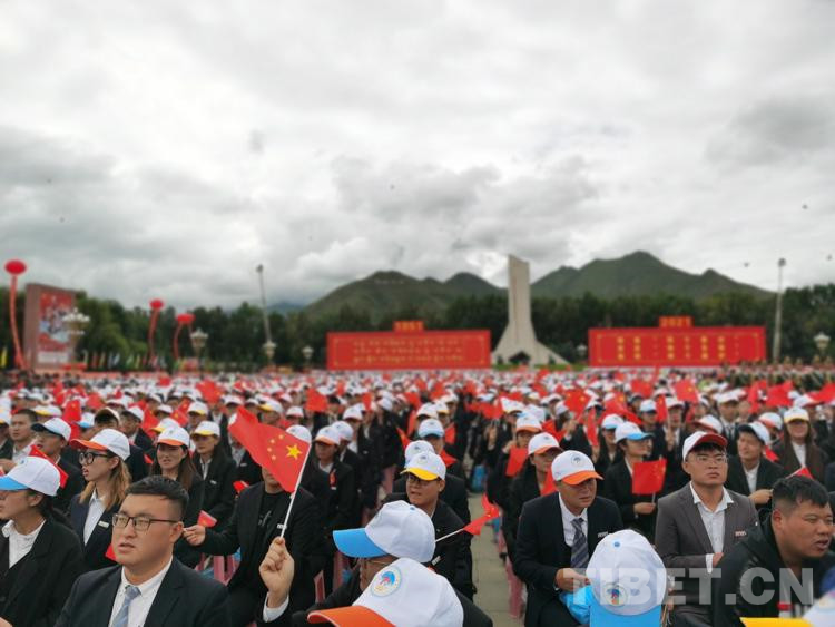 上午10時,齊扎拉宣布大會開始。全場起立,奏唱國歌,鮮艷的五星紅旗在布達拉宮廣場冉冉升起。在熱烈的掌聲中,尤權宣讀了中共中央、全國人大常委會、國務院、全國政協(xié)、中央軍委關于慶祝西藏和平解放70周年的賀電。