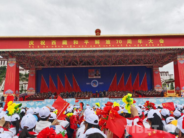 中國西藏網(wǎng)訊 19日上午,西藏各族各界干部群眾2萬多人歡聚在布達拉宮廣場,熱烈慶祝西藏和平解放70周年。中共中央總書記、國家主席、中央軍委主席習近平在賀匾上題詞“建設美麗幸福西藏 共圓偉大復興夢想”。中共中央政治局常委、全國政協(xié)主席、中央代表團團長汪洋出席慶祝大會并講話。