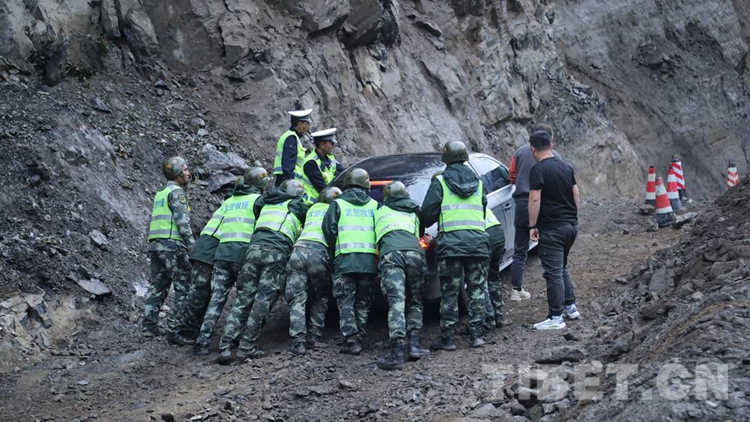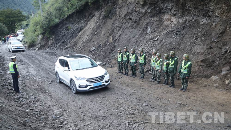 中國(guó)西藏網(wǎng)訊 8月28日18時(shí)許,經(jīng)過(guò)武警第二機(jī)動(dòng)總隊(duì)某支隊(duì)官兵連續(xù)5天的艱苦鏖戰(zhàn),搶修出一條長(zhǎng)215米的便道,使因路基垮塌造成國(guó)道318線西藏自治區(qū)林芝波密境內(nèi)段斷通的道路成功恢復(fù)通行,可供小型車(chē)輛單向通行。在武警官兵的指揮下,滯留兩端的車(chē)輛有序帶隊(duì)安全通過(guò)。