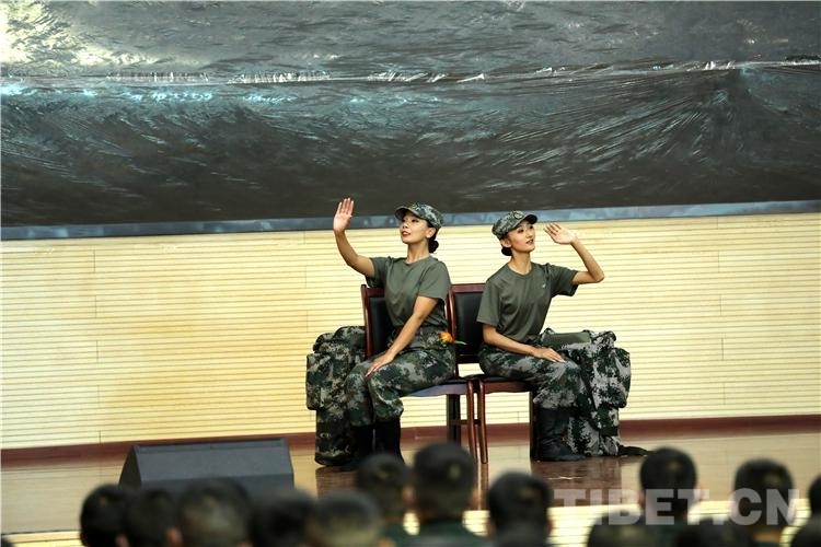拉薩警備區(qū)某團(tuán)女兵牟晨雨告訴記者:“觀看了今天的演出,我覺得非常精彩也備受鼓舞。感謝文工團(tuán)文藝輕騎隊(duì)的戰(zhàn)友們?cè)谖壹磳⑼宋榈臅r(shí)候,給我?guī)?lái)了這樣一份非常難忘的‘禮物’?!保ㄖ袊?guó)西藏網(wǎng) 通訊員/何琪)