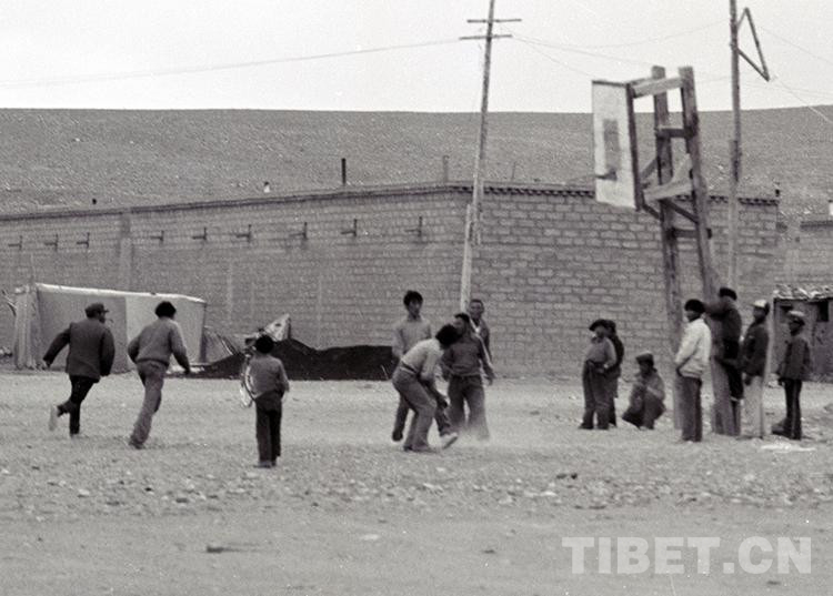 這是在文部辦事處(現(xiàn)尼瑪縣)衛(wèi)生院房前打籃球玩耍的孩子們(唐召明1987年攝)