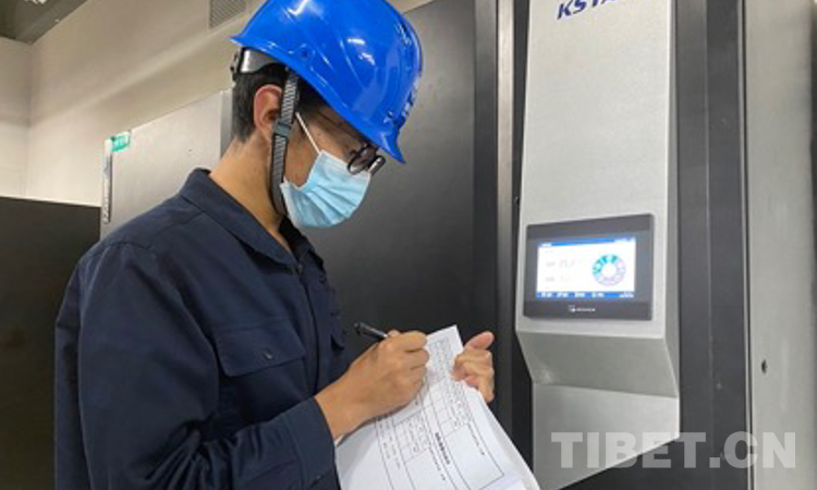 圖為國網(wǎng)西藏信通公司值班員對設備進行巡檢 (圖片由國網(wǎng)西藏電力有限公司提供)