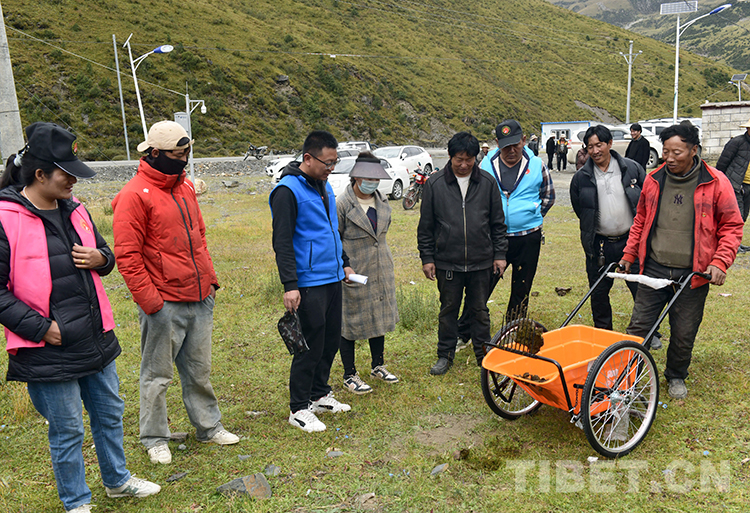 今年9月15日,那曲市安多縣帕那鎮(zhèn)帕那社區(qū)居委會居民嘎達在領到撿拾車后,激動地說:“協會給我們捐贈了非常實用的物品,大家都很喜歡,以后一定要好好使用它?!?/p>
