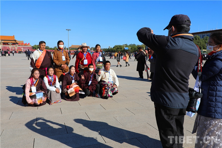 圖為部分西藏基層干部在天安門廣場(chǎng)合影留念 攝影:柳文婷
