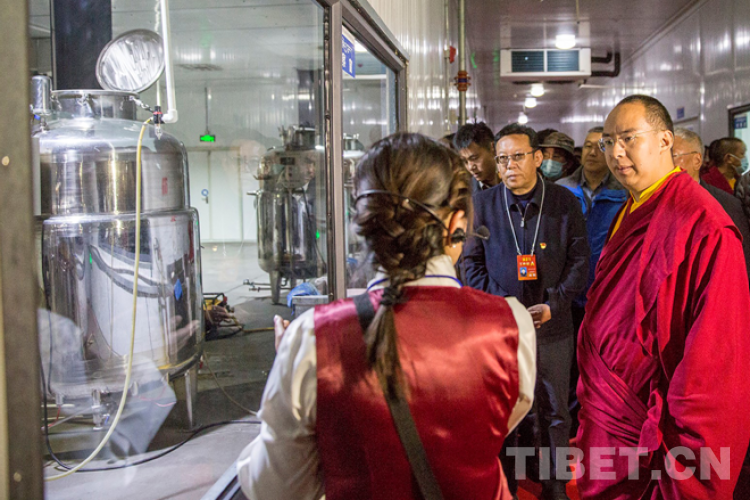 圖為班禪察看基地產(chǎn)品 攝影:歐帆