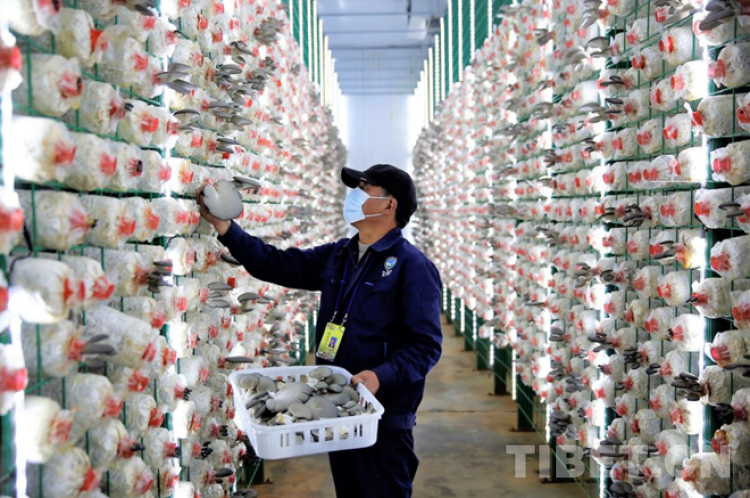 這座位于謝通門縣達(dá)那答鄉(xiāng)的食用菌基地占地345畝,建筑面積46.6畝,設(shè)有實(shí)驗(yàn)室、原料庫(kù)、滅菌車間、攪拌車間、打包車間、冷卻車間、液體菌種培養(yǎng)室、接種室、菌包培養(yǎng)室、工廠化出菇棚、冷庫(kù)等,是西藏自治區(qū)唯一一家集菌棒制作、生物菌生產(chǎn)培育、生物質(zhì)燃料與有機(jī)肥制作、種植技能培訓(xùn)于一體的規(guī)?;?、集約化、標(biāo)準(zhǔn)化、現(xiàn)代化、循環(huán)綠色生物科技示范園區(qū)。