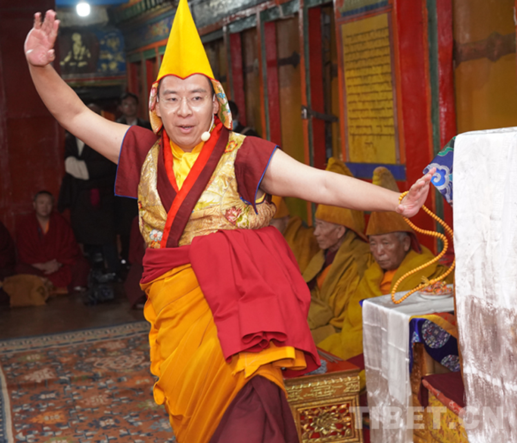 27日(藏歷9月22日),扎什倫布寺舉行祝賀班禪獲得嘎欽學(xué)位吉祥祈愿法會(huì)。班禪向在場(chǎng)所有僧眾摸頂賜福,并與僧眾集體誦經(jīng),回向祈福饒益眾生、法務(wù)昌隆、國(guó)泰民安、風(fēng)調(diào)雨順。