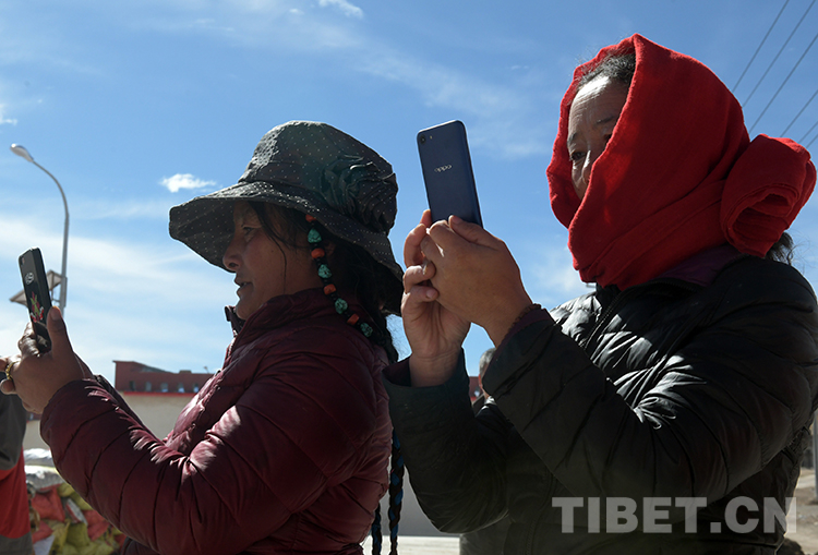 這是聶榮縣色慶鄉(xiāng)帕玉村兩位牧女使用手機(jī)了解外面的精彩世界。現(xiàn)在,藏北高原許多牧民群眾使用上了手機(jī)(唐召明2019年9月27日攝)