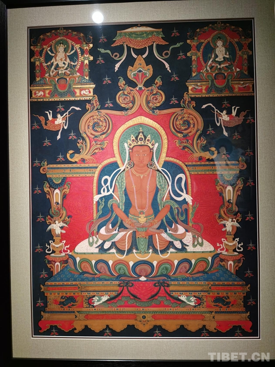 “我在畫作里添加了很多漸變色的處理,線條的勾畫更加輕盈,細節(jié)處理也更加細致。這些是我所創(chuàng)新的一些做法?!蔽鞑匦律瓶ó嫀熛聂斖颜f,“西藏的唐卡繪畫方法流傳至今,一直都保留著古老繪畫技藝與方法。隨著社會的發(fā)展以及人們意識、觀念的變化,對唐卡畫師的審美觀提出了更高的要求,要及時去了解社會的普遍審美觀念,不斷地去學習、去創(chuàng)新,但萬變不離其宗。”