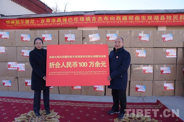 為表達(dá)對(duì)基層牧民群眾的體恤和關(guān)心,進(jìn)一步提高基層牧民群眾的獲得感、幸福感,班禪決定以個(gè)人名義向雙湖縣從事牧業(yè)生產(chǎn)的牧民捐贈(zèng)2000件防寒衣物。12月6日,在日喀則市德慶·格桑頗章院內(nèi)舉行了捐贈(zèng)儀式,將這批防寒衣物交至雙湖縣。