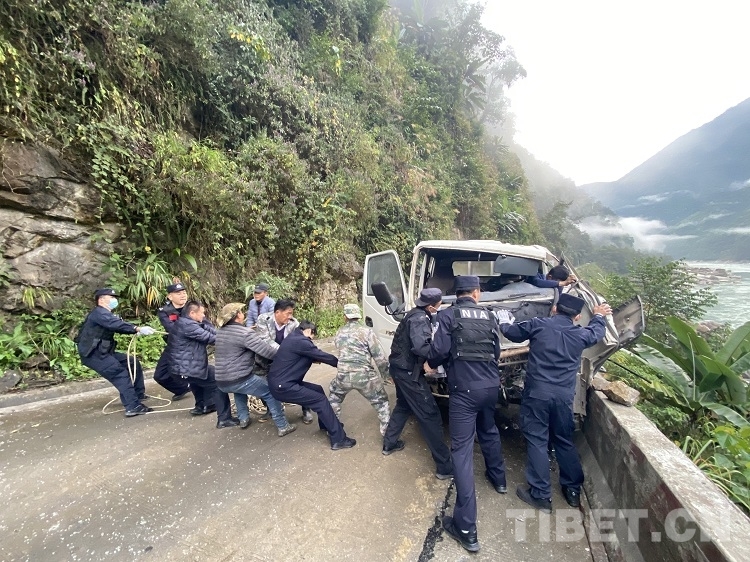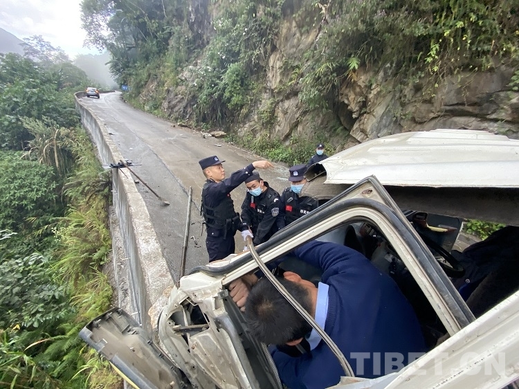 中國(guó)西藏網(wǎng)訊 “警官,您好,我開著貨車在轉(zhuǎn)彎時(shí)發(fā)生了側(cè)滑,出了事故,我被卡在駕駛室里了……”12月6日上午9時(shí)許,西藏自治區(qū)林芝邊境管理支隊(duì)達(dá)木邊境派出所(以下簡(jiǎn)稱:達(dá)木邊境派出所)接到群眾求助電話。有群眾在經(jīng)過(guò)轄區(qū)內(nèi)的國(guó)道559(扎墨公路)某段時(shí)車輛發(fā)生甩尾側(cè)滑,駕駛員受傷被困。在接到報(bào)警后,達(dá)木邊境派出所迅速反應(yīng),第一時(shí)間組織民警參加救援工作。