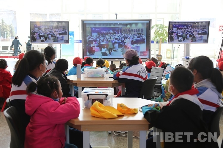 圖為西藏自然科學(xué)博物館受邀連線此次活動,西藏中小學(xué)生代表準(zhǔn)備連線 攝影:王佳豪