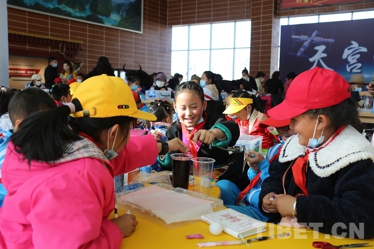 西藏自治區(qū)拉薩市西藏自然科學(xué)博物館內(nèi),在熱巴舞的歡聲律動和“液氮火箭”科普實(shí)驗(yàn)的“飛天掠影”中,來自拉薩市第一小學(xué)和拉薩江蘇實(shí)驗(yàn)中學(xué)的80名學(xué)生共同觀看了“天宮課堂”連線直播,聆聽來自空間站的親切聲音,與中國空間站內(nèi)的航天員“零距離”同步“天宮課堂”科學(xué)實(shí)驗(yàn)操作。