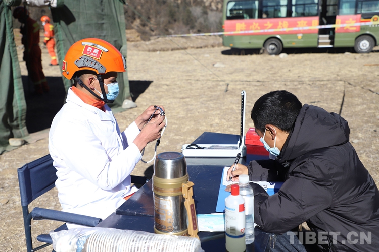 圖為醫(yī)療救護組及時對被救人員做好防寒保暖工作