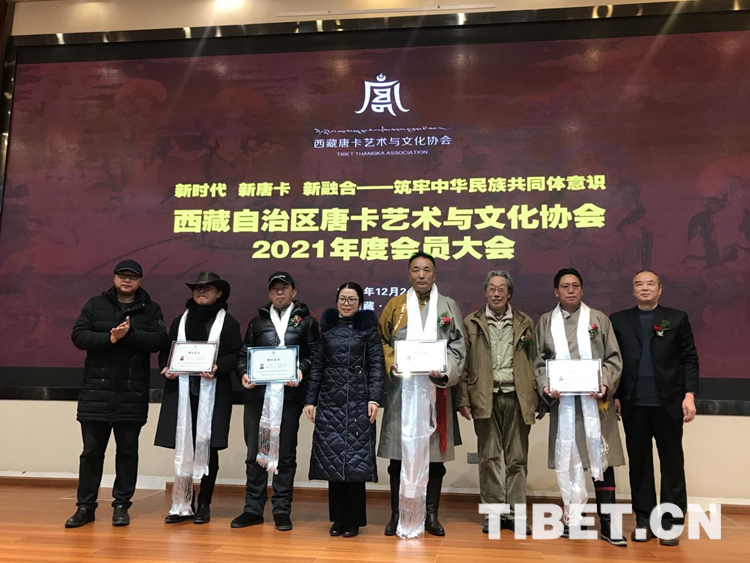 此外,會議聽取了西藏唐卡藝術(shù)協(xié)會年度工作報告,現(xiàn)場進行關(guān)于西藏唐卡藝術(shù)與文化創(chuàng)作的訪談及展示該協(xié)會的新標志,并向部分會員單位及個人頒發(fā)了聘書、證書。