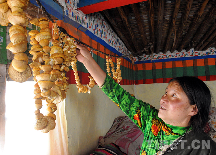 這是斯求卓瑪術(shù)后在當(dāng)?shù)卣顿Y建設(shè)的安居房新家晾曬草原野生蘑菇(唐召明2012年8月3日攝)