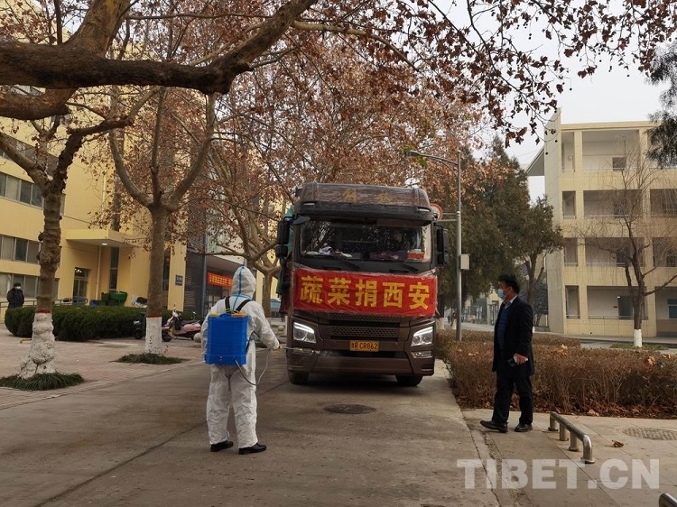 這是由河南南陽社區(qū)志愿者協(xié)會(huì)組織的馳援陜西的大卡車,兩位志愿者協(xié)會(huì)成員于2022年1月4日晚11時(shí)30分出發(fā),驅(qū)車千里一夜未眠,只為第一時(shí)間把新鮮蔬菜送到學(xué)校,助力抗疫。1月5日上午11時(shí),在西藏民族大學(xué)第一餐廳廣場前,舉行了捐贈(zèng)儀式。