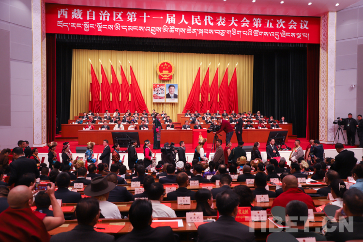 中國(guó)西藏網(wǎng)訊 1月7日上午,西藏自治區(qū)第十一屆人民代表大會(huì)第五次會(huì)議舉行第三次全體會(huì)議。圖為會(huì)議現(xiàn)場(chǎng)