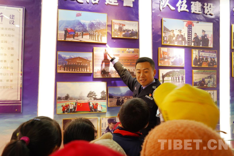 圖為林芝南伊邊境派出所邀請駐地小學(xué)生參觀單位榮譽(yù)室 攝影:馬智慧