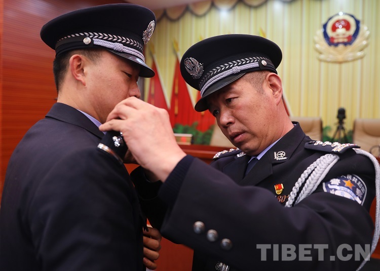 中國西藏網(wǎng)訊 “接國家移民管理局2021年12月24日《關(guān)于授予和晉升計江飛等同志人民警察警司警銜的命令》,以下7名同志授予一級警員警銜……”1月10日,西藏自治區(qū)林芝邊境管理支隊在第二個中國人民警察節(jié)這個特殊的節(jié)日里,為92名民警晉升和授予人民警察警銜,進(jìn)一步增強(qiáng)了民警的責(zé)任感、使命感,激勵廣大民警投身于偉大的移民管理事業(yè)。