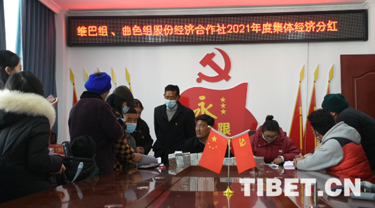 中國西藏網(wǎng)訊 在藏歷新年來臨之際,2月23日,西藏自治區(qū)拉薩市城關(guān)區(qū)奪底街道維巴村維巴組、曲色組股份經(jīng)濟合作社2021年度集體經(jīng)濟分紅,399戶共發(fā)放530650元分紅資金。