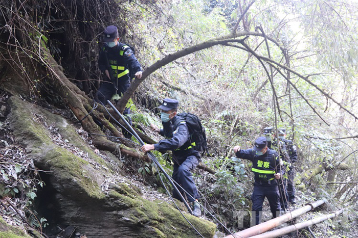 “大家注意安全,我走前面,你們跟著我的腳步走,相互之間照應(yīng)一下,發(fā)現(xiàn)情況及時(shí)匯報(bào)?!睂τ谟颜x橋執(zhí)勤點(diǎn)負(fù)責(zé)人的尼瑪云旦來講,帶領(lǐng)戰(zhàn)友們巡山踏查是一天中最重要的工作之一。走在隊(duì)伍前面的尼瑪云旦用棍棒將枝繁葉茂的樹枝向兩邊拍打,帶領(lǐng)著大家一步一腳印的向上爬。