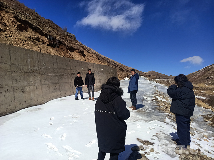 圖為占拉帶領(lǐng)同志們赴江達(dá)鎮(zhèn)瓦許村排查安全生產(chǎn)隱患