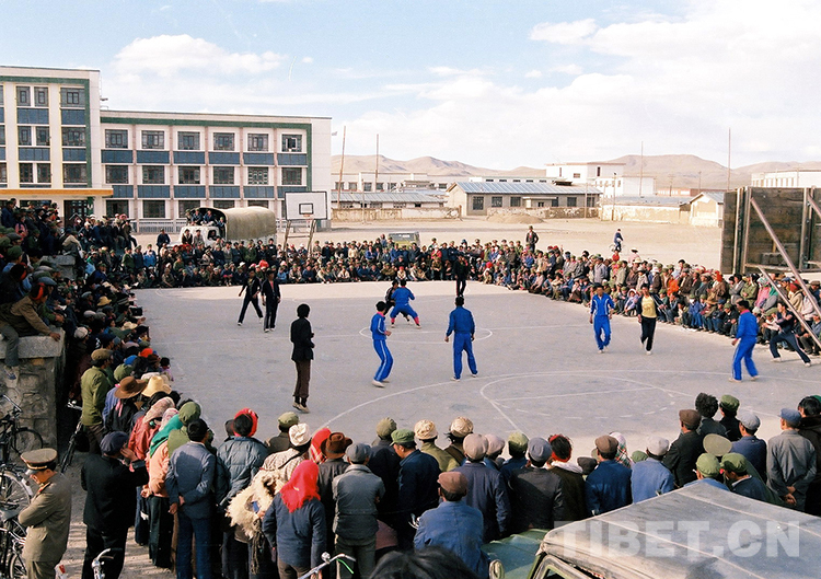 這是在藏北高原首府那曲鎮(zhèn)進行的一場籃球比賽(唐召明1987年攝)