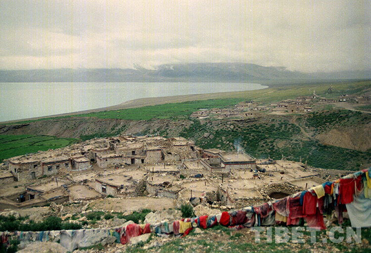 這是位于當(dāng)惹雍錯湖畔的文部辦事處文部區(qū)文部鄉(xiāng)(現(xiàn)尼瑪縣文部鄉(xiāng)南村)景觀(唐召明1987年攝)
