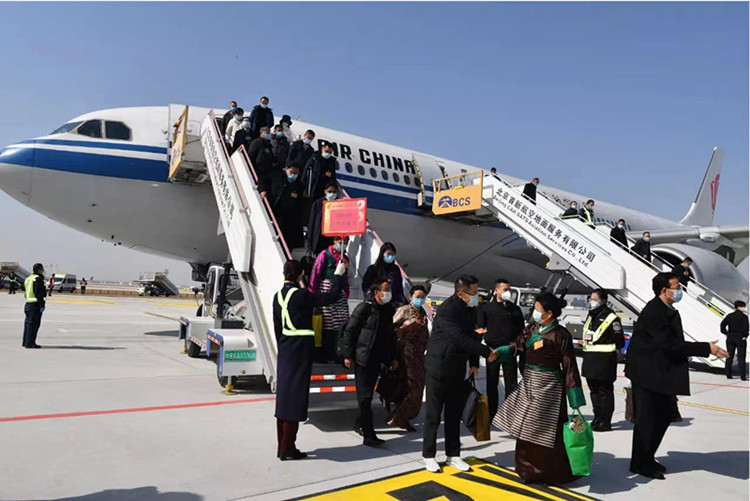 圖為兩會(huì)代表委員抵京。圖片來源于西藏日?qǐng)?bào)
