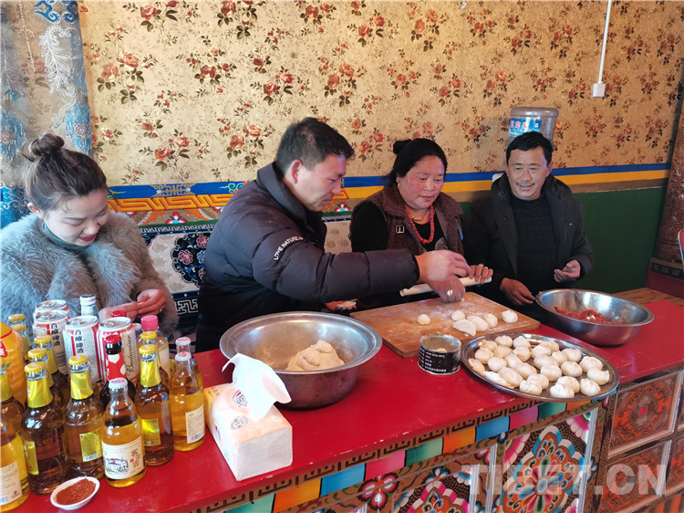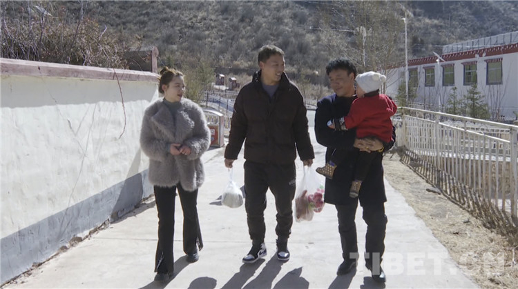圖為土丁尼瑪迎接鐘志勇一家人到自家過藏歷新年
