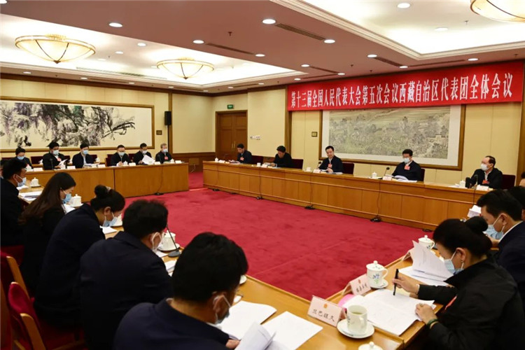 圖為3月3日下午,十三屆全國(guó)人大五次會(huì)議西藏自治區(qū)代表團(tuán)召開(kāi)第一次全體會(huì)議。旦增西旦 攝