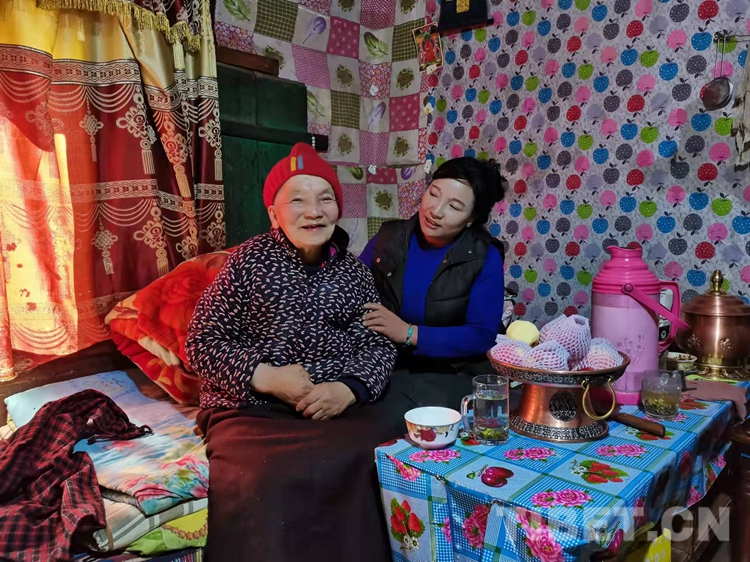 今年73歲的玉蘭老人,在崗?fù)写迳盍硕嗄?,她的父親是來自四川的漢族,母親是崗?fù)写宓牟刈?,從小就在藏漢結(jié)合家庭中成長起來。現(xiàn)在,在女兒沖旺姆的精心照料下,過著安詳幸福的晚年生活。江達縣崗?fù)墟?zhèn)黃格村村民玉蘭說:“大概二十多年前,我們搬到了崗?fù)写迳?,這么多年,鄉(xiāng)里、村里的領(lǐng)導(dǎo)對我們家很照顧,我感覺現(xiàn)在生活的很好,很滿意!”