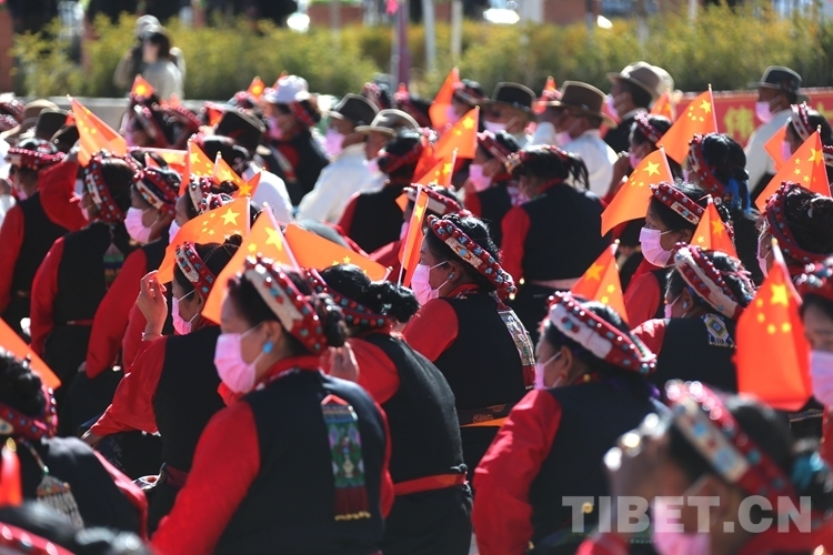 上午10時(shí)30分,伴隨著歌舞《歌頌幸?!?,慶祝西藏百萬農(nóng)奴解放63周年專場(chǎng)文藝演出拉開帷幕?!睹飨扇藖怼贰豆湫鲁恰贰斗磙r(nóng)奴把歌唱》《新舊對(duì)比》等節(jié)目在現(xiàn)場(chǎng)掀起一個(gè)又一個(gè)高潮。舞臺(tái)下,滿是身著盛裝的各族群眾,不斷揮舞著手中的五星紅旗,臉上綻放著感動(dòng)和幸福的笑容。
