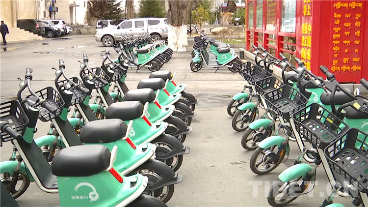 圖為八宿縣投放的整齊統(tǒng)一的迅馳共享單車(chē)